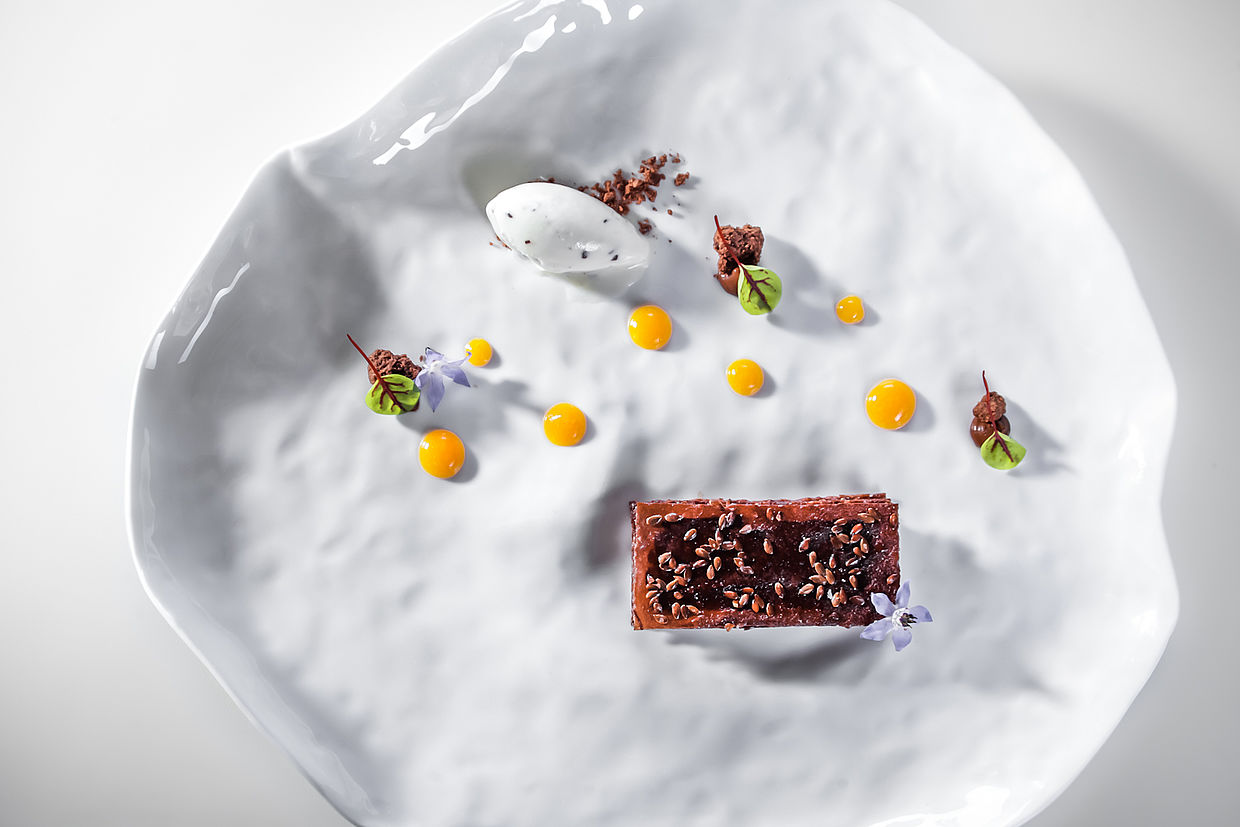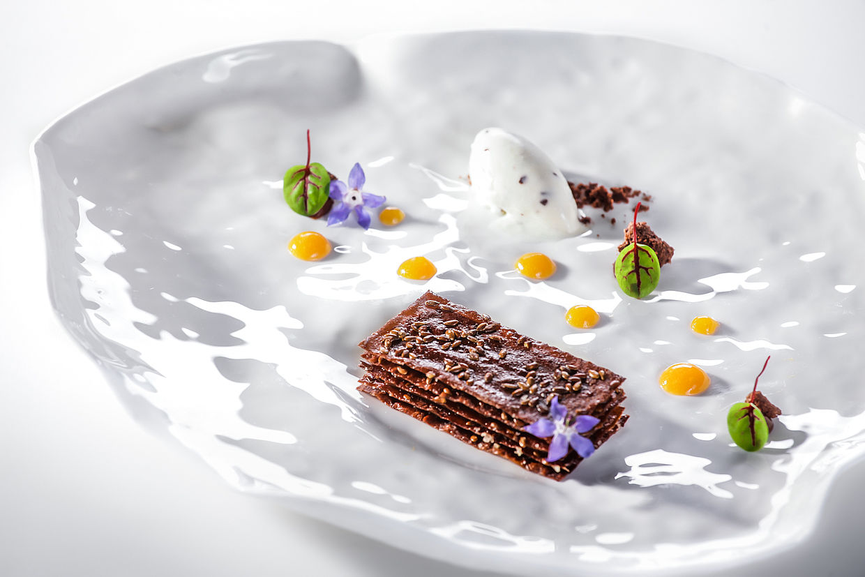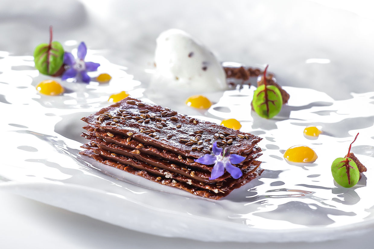 Per i 20 anni del Restaurant St. Hubertus - Hotel & Spa Rosa Alpina Relais & Châteaux il pastry chef andrea tortora ci ha deliziato con un dolce basato sui prodotti Agrimontana e sul cioccolato Domori!