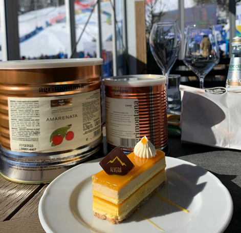 Il Maestro Massimo Alverà ha saputo sapientemente intepretare gli ingredienti Agrimontana in deliziosi dolci e dessert al piatto del catering della Coppa del Mondo.