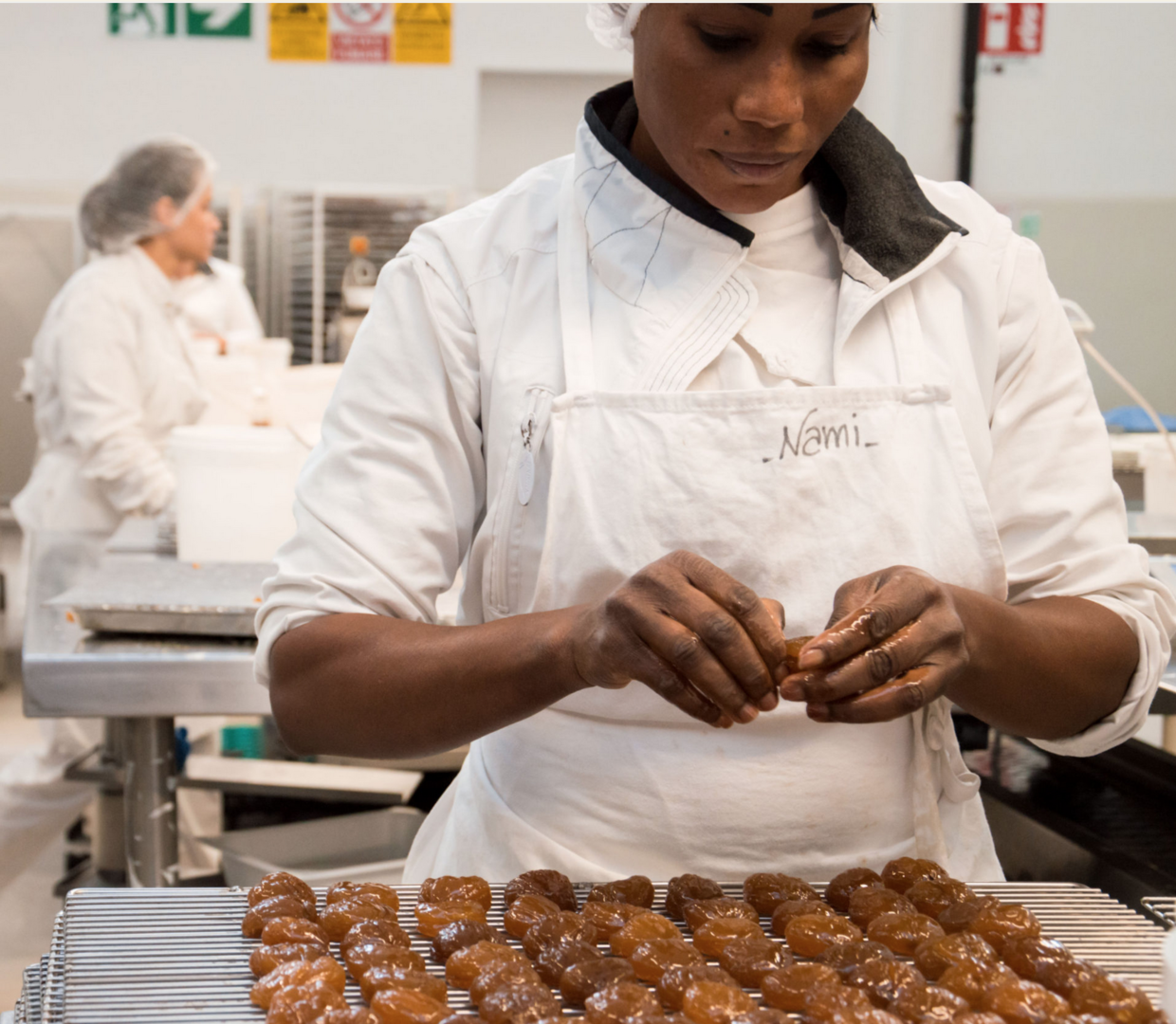 Ma c’è un altro segreto che rende speciale il processo di canditura di Agrimontana, l’imprescindibile tocco dell’uomo. Come nel caso del mastro canditore, che controlla i frutti e sa riconoscere il perfetto punto di canditura, lasciandosi guidare dalla sua esperienza. O come alcune donne che, durante il controllo finale, con un tocco leggero ed esperto, eliminano il germe – un picciolo a forma di goccia caratteristico dei frutti – e valutano i marroni canditi raffreddati e sgocciolati, guardandoli e palpandoli uno ad uno per assicurarsi la correttezza del calibro e il rispetto dello standard qualitativo dell’azienda.