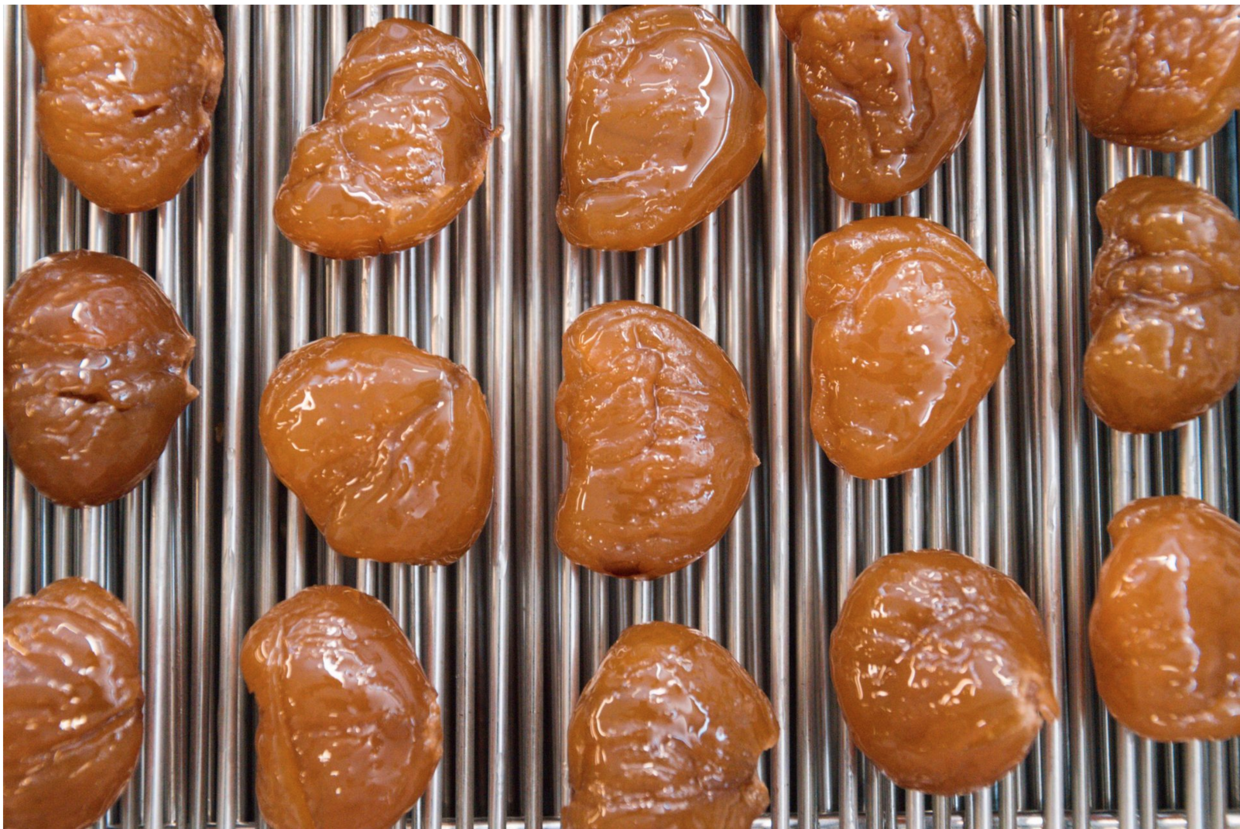 È qui, dopo la selezione dei marroni canditi perfetti, che si aprono due strade: i migliori possono essere incartati nei classici pirottini, oppure, se devono diventare marrons glacés, passano alla fase della glassatura. I marroni vengono ricoperti da una glassa formata da acqua e zucchero a velo e poi ripassati in forno per un’ulteriore cottura. Il risultato è la tipica crosticina zuccherata che ricopre il frutto e che regala ancora più croccantezza all’esterno.