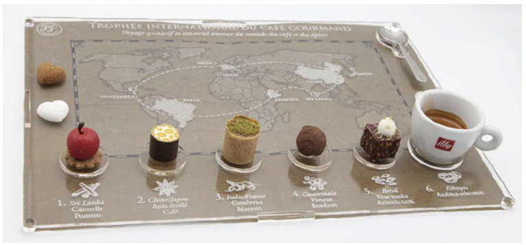 La prima competizione sul café gourmand ha visto trionfare uno chef italiano: Tommaso Foglia, executive pastry chef del San Barbato Resort Spa & Golf di Lavello con il suo “viaggio gustativo e sensoriale intorno al mondo delle spezie e del caffè”. Lo chef ha infatti presentato una selezione di dessert mignon accompagnati a un espresso illy che, per gusti e materie prime, ripercorrono un viaggio nei diversi continenti.