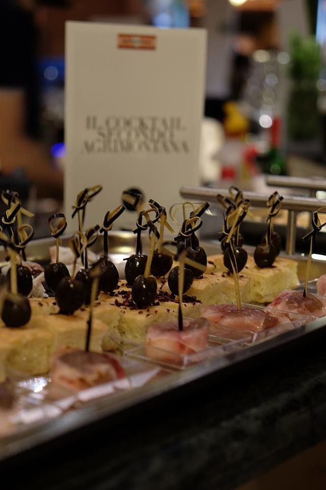 Cesare Rizzini a proposé son paneton salé, dans lequel seront mis en avant les figues confis Agrimontana, assortis à la langue de bœuf et une pâte de levure naturel. Diego Crosara a pris soin, par contre, du buffet de l'apéritif d'ouverture avec un assortiment exclusif de mignon salés.