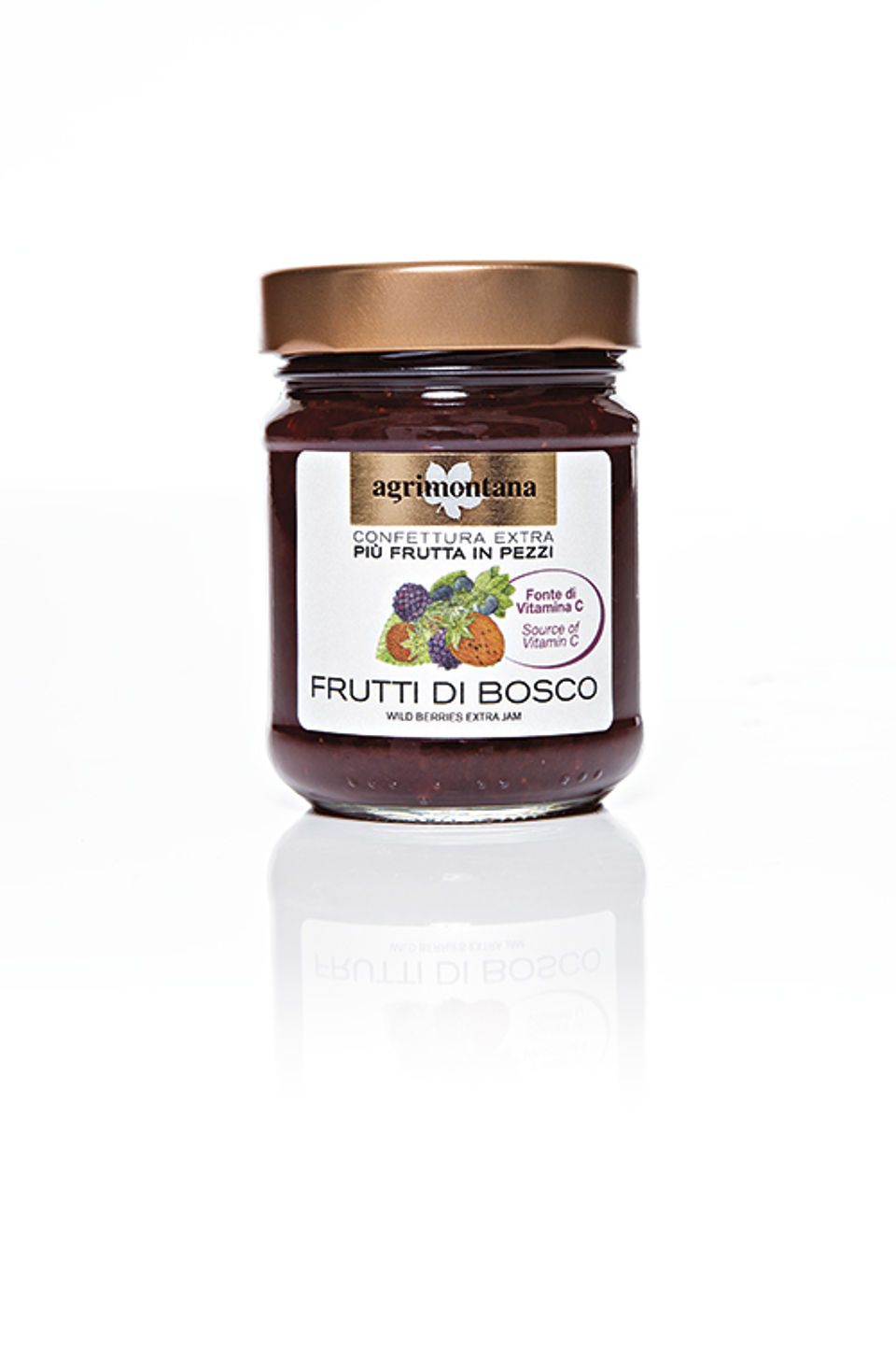 Confettura extra di Frutti di Bosco con più frutta in pezziFonte di vitamina C la cottura a basse temperature preserva intatte le proprietà della frutta e il naturale contenuto vitaminico.