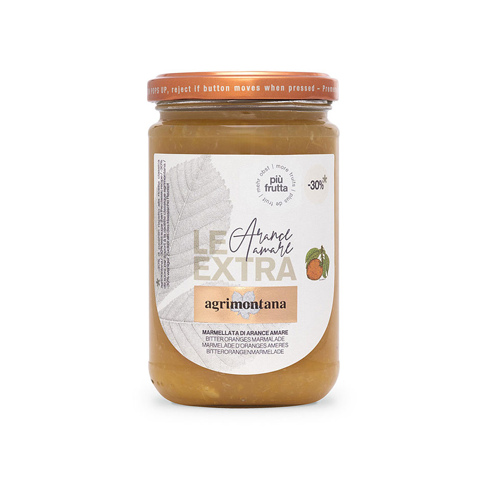 Confettura le Extra - Arance amareCon meno zucchero rispetto alla ricetta classica Agrimontana. Composte da frutta e zucchero di canna, le confetture extra sono naturalmente prive di glutine.