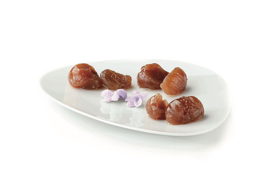 Marrons glacés gemelloUnico marrone diviso in 2 parti gemelle dalla seconda pelle. Origine: varie.