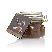 La mostarda nasce da una ricetta inedita che avvolge ed esalta il gusto dolce e delicato dei marroni con una miscela di oli essenziali, ideale per accompagnare piatti di carne, salumi e formaggi.